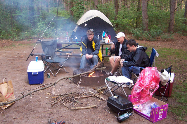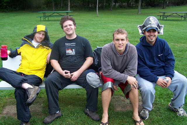 Apparently, while the rest of us were out canoeing, Doug and Gerald had gone to a redneck wedding party somewhere outside of the campgrounds. Apparently they fit right in. They also stole the groom's commemorative mug. That night we sat around the campfire and told jokes. Aaron was definetely the best story teller, and his 'fuck you clown' and 'monkeycock' jokes stole the show. We also came up with a few great nicknames for Aaron including 'Football' and 'WT', both of which fit him suitably. Sadly we had to break camp and leave for Madison the next morning.