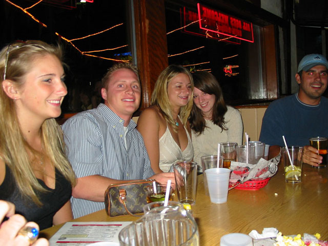 Last but not least, the three previously unmentioned ladies in this photograph are Aaron, Kourtney and Brittany. I suppose Aaron's not a lady, but he did play on the football squad at the University of Chicago...