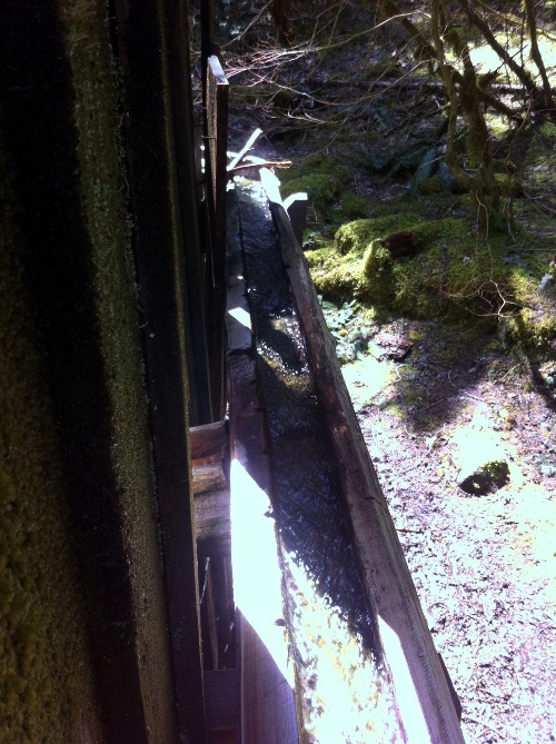 A concrete 'ramp' was poured around the spring to control the water and allow it to flow into a wooden trough: