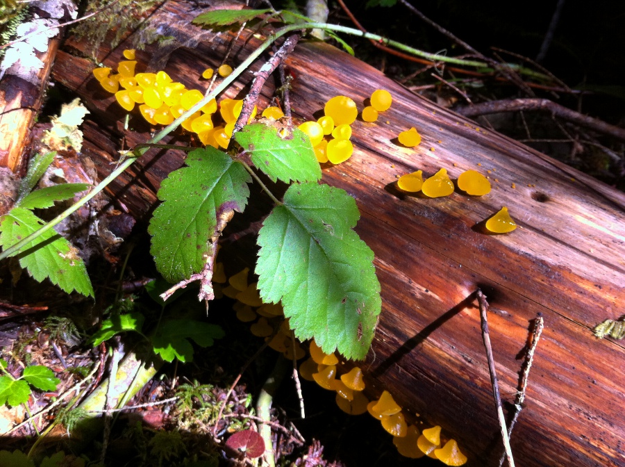 At one point we found a strange fungus that looked like gel candies attached to a log: