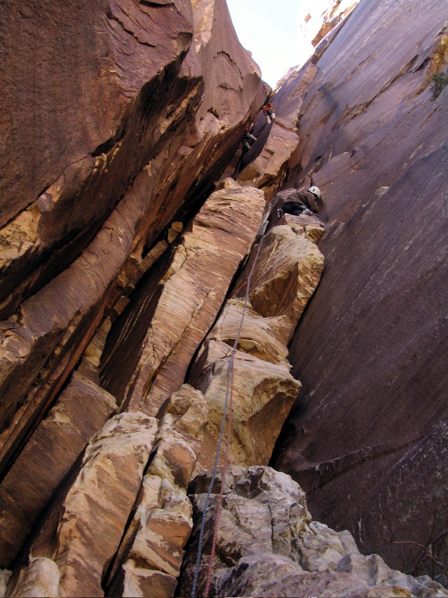 The next rappel looked impossible to downclimb at first, but once I rappelled it, I realized it was possible to climb, so I climbed up! It was a pretty long way, so I was glad not to fall: