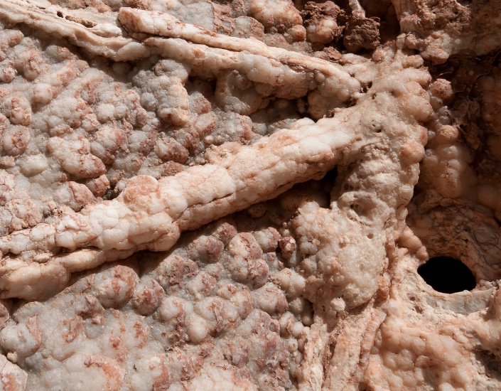 The texture of the fan wasn't completely rock. It seemed to have lots of micro-organisms and mosses growing in it. Here's a close up of the bottom of it with Liz spelunking underneath: