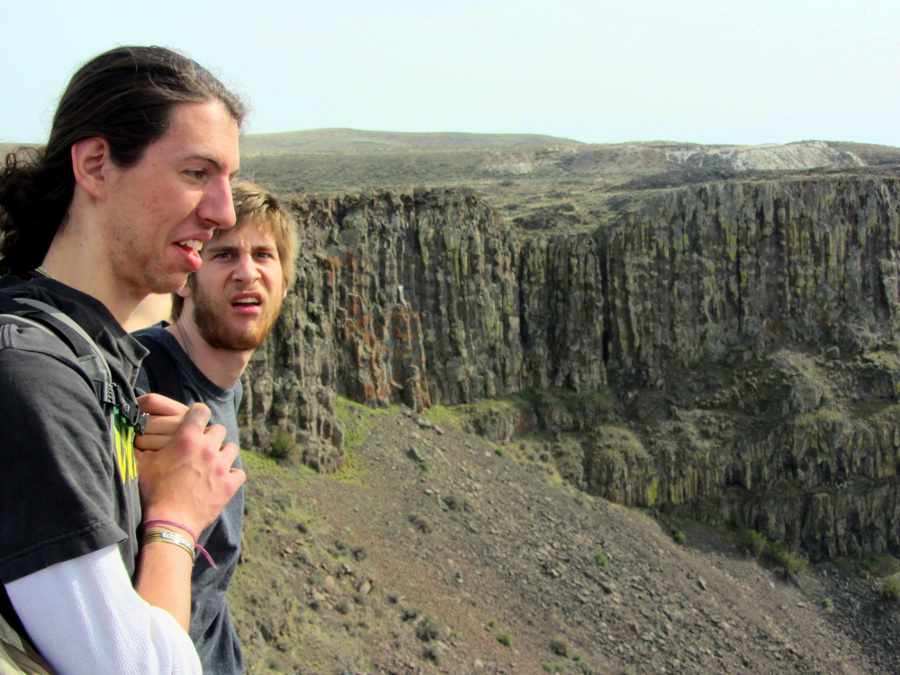 While we climbed Saph decided to head out for a hike to the sand dunes at the bottom of the Coulee. After we climbed for most of the morning Saph returned and the group of us left to hike toward the waterfall at the head of the coulee. Here's a picture of Janel in my classic pose at the top of the mesa: