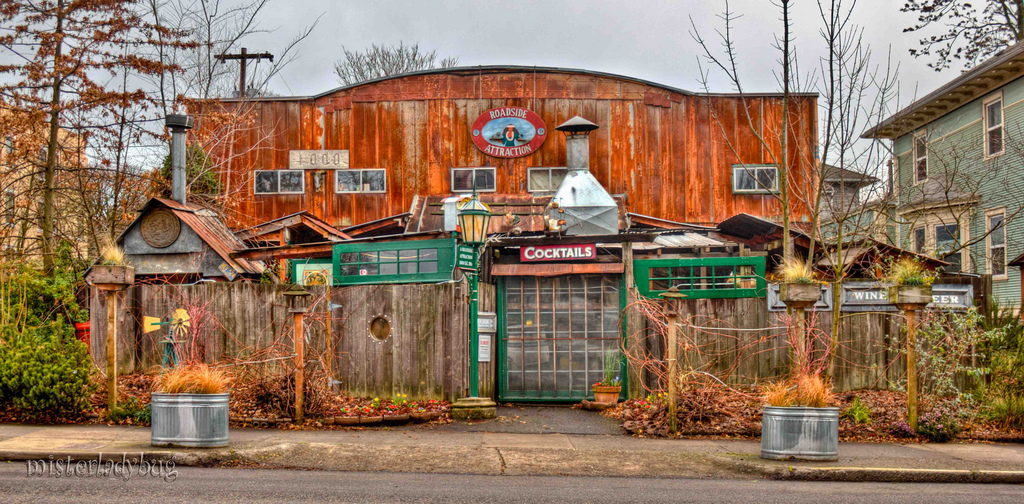 On April 6th Janel celebrated her birthday. After a hospice visit, I joined Janel, Rena and Rob at Mt. Tabor park to walk around for awhile. The weather was beautiful and someone was lightly playing a drum, so it was very peaceful to lie down in the grass for awhile. Afterwards the four of us went to a community accupuncture session nearby. It was a bit more enjoyable than my first accupuncture experience but still somewhat weird. The practitioner seemed incapable of keeping his voice down when talking to people about their ailments. Nonetheless, it was pretty enjoyable overall. Next we grabbed some small, make-your-own cupcakes and returned to the city. We stopped at a bar I'd never been to called 'Roadside Attraction', which was absolutely my style. Although I haven't been drinking much lately, I really enjoyed this bar since it had an outdoor fire pit and really good local beer on tap. Here's a picture of the place that I didn't take: